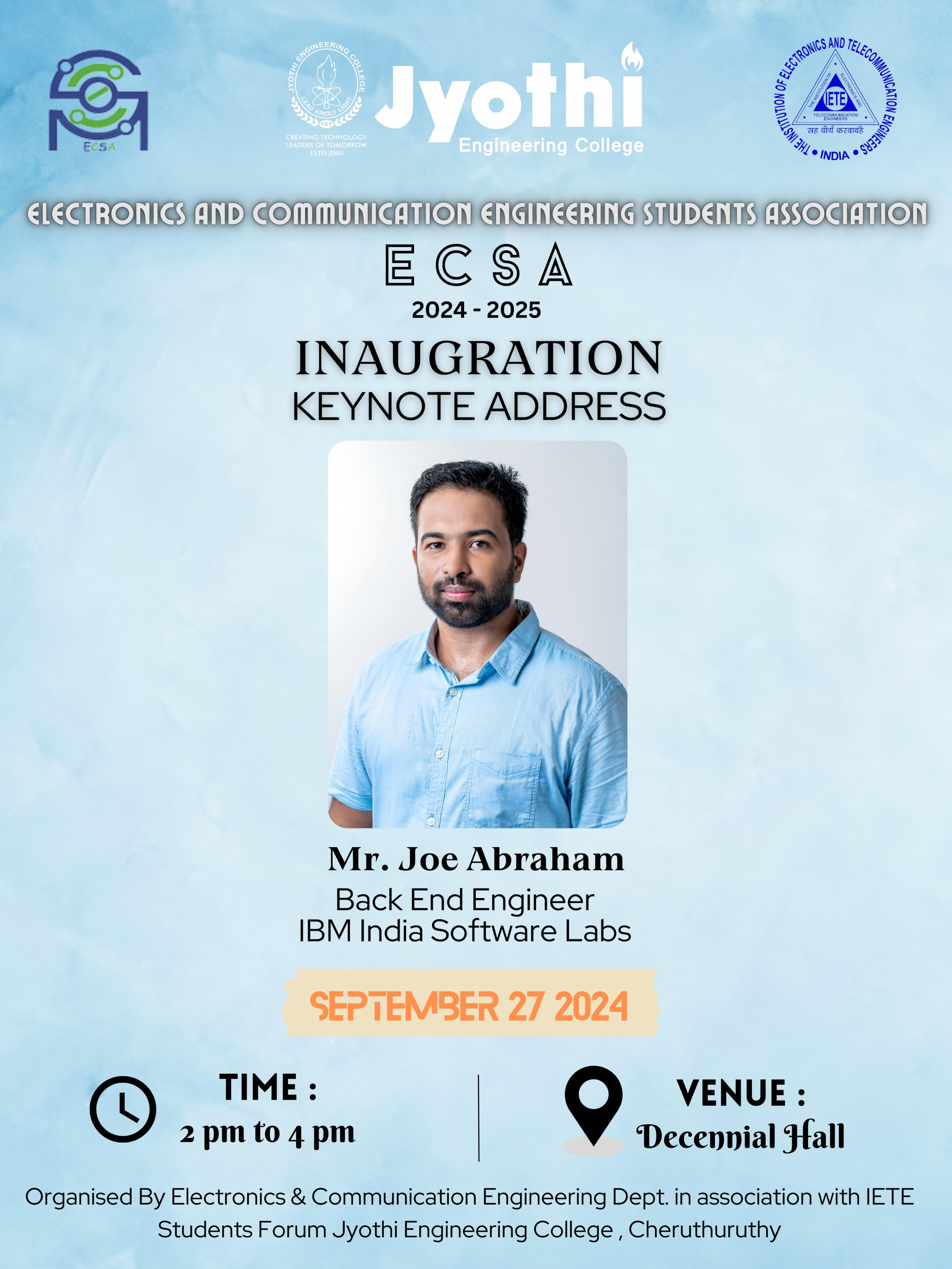 IEI Students Chapter, EEE Department of Jyothi Engineering College in association with Institutions Innovation Council, organized a seminar on the title “Design of All terrain Electric vehicle for Military Applications" on 24th September 2024. All the members of IEI Student Chapter, EEE Department attended the seminar. Mr. Mayank Arora, CEO & Founder, Capabl (from Elite Techno Groups) was the resource person for this event. IEI members got motivated innovate and to design their own prototype after attending this seminar.